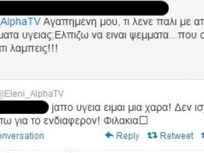 Διάφορα δημοσιεύματα των τελευταίων ημερών ήθελαν την Ελένη Μενεγάκη να έχει αποβάλει το μωρό του συντρόφου της, Ματέο Παντζόπουλου. Η ανησυχία μιας τηλεθεάτριας έδωσε την αφορμή στην Ελένη Μενεγάκη να δώσει την απάντησή της... «Αγαπημένη μου, τι λένε πάλι με αποβολές και προβλήματα υγείας; Ελπίζω να είναι ψέματα...που σίγουρα είναι..γιατί λάμπεις!!!», έγραψε η τηλεθεάτρια στο twitter. H απάντηση της Ελένης ήταν: «Από υγεία είμαι μια χαρά! Δεν ισχύουν αυτά! Ευχαριστώ για το ενδιαφέρον! Φιλάκια».