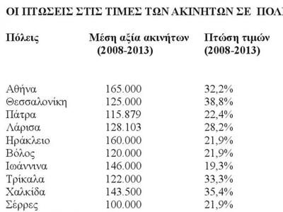Οπως αναφέρουν και τα ΝΕΑ πρωταθλήτρια πόλη στην πτώση τιμών αναδεικνύεται η Θεσσαλονίκη με μέση υποχώρηση 39% και ακολουθούν η Κατερίνη (-36%), η Χαλκίδα (-35%), ενώ η Αθήνα καταλαμβάνει την έκτη θέση με πτώση 32%.