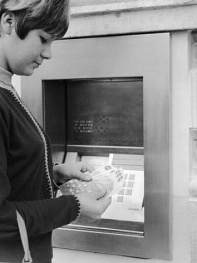 Στις 27 Ιουνίου του 1967 το υποκατάστημα της τράπεζας στην οδό Enfield High Street άρχισε να δίνει μετρητά από ένα μηχάνημα. Οι χρήστες εισήγαγαν ένα κουπόνι (το οποίο επιστρεφόταν στον πελάτη για να αποφεύγονται οι απάτες) και στη συνέχεια πληκτρολογούσαν ένα τετραψήφιο κωδικό (το σημερινό Pin) και έπαιρναν τα λεφτά τους.