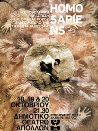 Το Δημοτικό Περιφερειακό Θέατρο Πάτρας και η Ομάδα Χορού Salto Futuro της Πατρινής χορογράφου Τατιάνας Λοβέρδου θα παρουσιάσουν το ερχόμενο τριήμερο 18-20 Οκτωβρίου 2013 την Χοροθεατρική Παράσταση με τίτλο «Homo Sapiens», στο Δημοτικό Θέατρο Απόλλων στις 21:30.