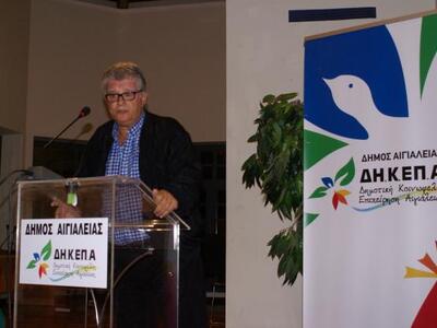 Στη συνέχεια, ο αιγιώτης δημοσιογράφος και εκδότης Φάνης Ζουρόπουλος παρουσίασε την εκδοτική δραστηριότητα της ΙΛΕΑ, για να πάρει το λόγο ο κεντρικός ομιλητής Δρ. Δημήτρης Σταθακόπουλος, ο οποίος με άμεσο και απλό λόγο κατάφερε να συνεπάρει το κοινό και να αποσπάσει θερμό χειροκρότημα, όταν μάλιστα στο τέλος της εκδήλωσης τραγούδησε τρία παραδοσιακά τραγούδια παίζοντας ο ίδιος ταμπουρά και λαούτο.