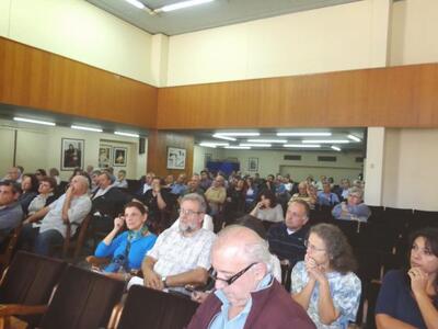 Η εκδήλωση συνεχίστηκε στην κατάμεστη πολιτών αίθουσα του ΜΛΤ μέχρι αργά το μεσημέρι με τοποθετήσεις του κοινού.