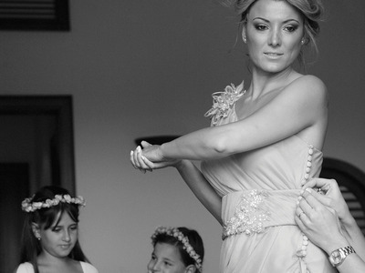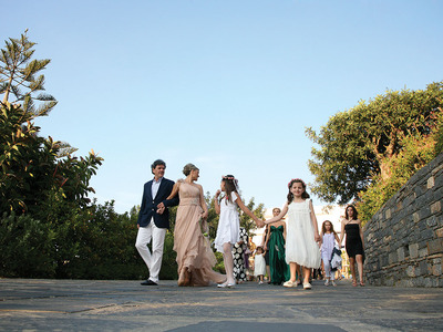 Η νύφη με την οικογένειά της και τα παρανυφάκια, λίγο πριν ξεκινήσει για την εκκλησία