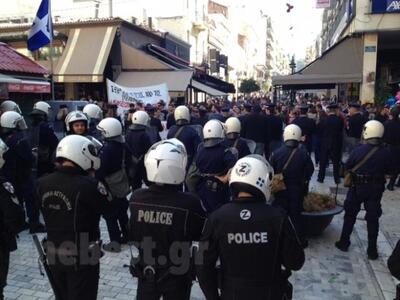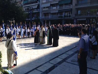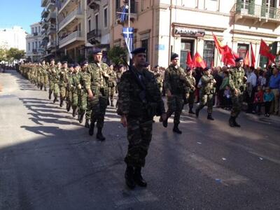 12.00 Πορεία προς στο κέντρο της Πάτρας πραγματοποιούν μέλη του ΚΚΕ και του ΠΑΜΕ. Οι διαδηλωτές με στεφάνια και πανό κατευθύνονται στην εκκίνηση της παρέλασης, με σκοπό να παρελάσουν μετά το τέλος της. Την ίδια ώρα, διμοιρίες των ΜΑΤ και άνδρες της ομάδας ΔΙΑΣ έχουν αποκλείσει συγκέντρωση 100 περίπου αντεξουσιαστών στη συμβολή των οδών Αγίου Νικολάου και Ρήγα Φεραίου, προκειμένου να μην κατευθυνθούν στο χώρο της παρέλασης.
