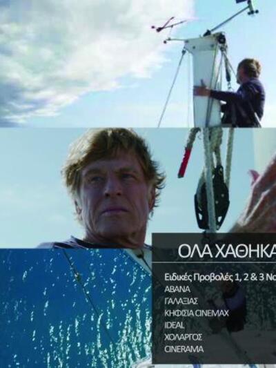 Για όσους Πατρινούς σινεφίλ βρεθούν στην Αθήνα το προσεχές σαββατοκύριακο, ας έχουν στα υπόψη ότι η κινηματογραφική εταιρεία διανομής Audiovisual πραγματοποιεί ειδικές προβολές – preview του νέου αριστουργηματικού όπως λέγεται φιλμ και στην κυριολεξία one man show του 77χρονου θρυλικού Αμερικανού σταρ Ρόμπερτ Ρέντφορντ, με τίτλο «Όλα Χάθηκαν – All is Lost» που έχει γράψει και σκηνοθετήσει ο 39χρονος Τζέι Σι Τσάντορ.