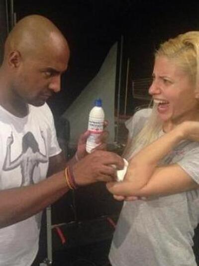 Αυτό που μάθαμε από τις φωτογραφίες είναι και ο μικροτραυματισμός της Ευαγγελίας Αραβανή αλλά και η περιποίηση προς εκείνη από τον Hσαΐα Ματιάμπα.