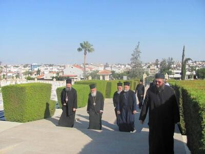 Εν συνεχεία προσκύνησαν στον Καθεδρικό Ιερό Ναό του Αγίου Ιωάννου του Θεολόγου της Αρχιεπισκοπής Κύπρου και ξεναγήθηκαν από τον κ. Ιωάννη Ηλιάδη, υπεύθυνο του Μουσείου της Αρχιεπισκοπής, ο οποίος κατόπιν ξενάγησε τους Αρχιερείς και τους λοιπούς εξ Ελλάδος Κληρικούς στο παρακείμενο Βυζαντινό Μουσείο.