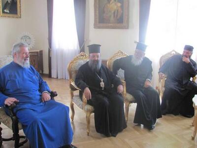 Ο Σεβασμιώτατος Μητροπολίτης Πατρών κ. Χρυσόστομος και ο Μητροπολίτης Μαντινείας και Κυνουρίας κ. Αλέξανδρος και οι λοιποί Κληρικοί, ανάμεσα τους και ο πρωτοπρεσβύτερος π. Νικόλαος Σκιαδαρέσης, προιστάμενος του νέου ιερού του Αγ. Ανδρέα Πατρών, που συνοδεύουν την Αγία Κάρα στηνμαρτυρική Κύπρο, έγιναν δεκτοί στην Ιερά Αρχιεπισκοπή Κύπρου από τον Μακαριώτατο Αρχιεπίσκοπο Κύπρου κ. Χρυσόστομο Β’ και ξεναγήθηκαν στους χώρους του ιστορικού κτηρίου. (Διαμέρισμα Εθνάρχου Μακαρίου, Παρεκκλήσιο Αποστόλου Βαρνάβα κλπ.).