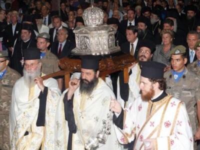 Πλήθος Κυπρίων πιστών καθημερινά προσκυνά στο ναό της Θεού Σοφίας στην περιοχή Στρόβολος της Λευκωσίας την Τιμία Κάρα του Πρωτοκλήτου Αποστόλου Ανδρέα που από την περασμένη Τρίτη 29/10 έχει μεταφερθεί στην Κύπρο συνοδεία του Μητροπολίτη Πατρών κ.κ. Χρυσοστόμου και του Μητροπολίτη Μαντινείας και Κυνουρίας κ.κ. Αλέξανδρου.