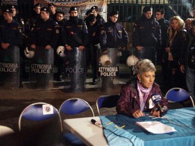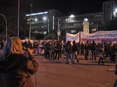 Την ίδια ώρα σε εξέλιξη ήταν μεγάλη συγκέντρωση έξω απο το ραδιομέγαρο. Πολίτες ανταποκρίθηκαν στο κάλεσμα των εργαζομένων και συγκεντρώθηκαν στη Λ. Μεσογείων προκειμένου να διαμαρτυρηθούν για την έφοδο των ΜΑΤ τα ξημερώματα στην ΕΡΤ.