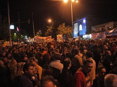 Την ίδια ώρα σε εξέλιξη ήταν μεγάλη συγκέντρωση έξω απο το ραδιομέγαρο