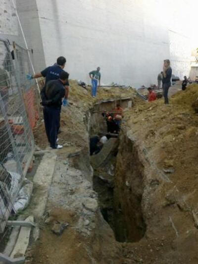 Θαμμένος από τη μέση και κάτω βρίσκεται μέσα σε τόνους χώματος, ένας εργαζόμενος πίσω από το Πολιτιστικό Κέντρο Ηρακλείου.