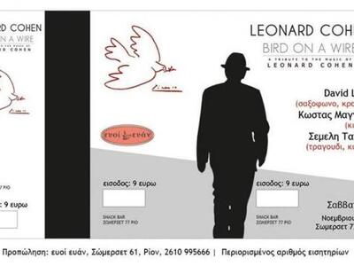 Ξεχωριστή προμηνύεται η αποψινή μουσική βραδιά στο «Ευοί Ευάν» στην οδό Σώμερσετ 77, στο Ρίο της Πάτρας όπου μετά τις 22.00 θα πραγματοποιηθεί ένα αφιέρωμα – tribute στον σπουδαίο Καναδόεβραίο καλλιτέχνη και λάτρη της Ελλάδας (είχε ζήσει για πολλά χρόνια στην γραφική Ύδρα), τον 79χρονο σήμερα Λέοναρντ Κοέν.