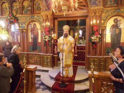 Στον ομώνυμο ιερό ναό όπου προιστάμενος είναι ο αρχιμανδρίτης π. Χρύσανθος Στελλάτος, τελέστηκε το πρωί του Σαββάτου αρχιερατική Θεία λειτουργία χοροστατούντος του σεβασμιοτάτου Μητροπολίτου Πατρών κ.κ. Χρυσοστόμου, ο οποίος κήρυξε και το Θείο λόγο.