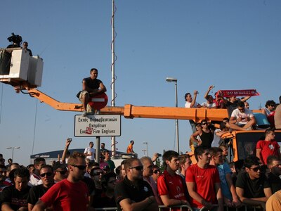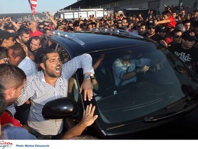 Από την υποδοχή δεν έλειψαν και τα συνθήματα υπέρ του Βαγγέλη Μαρινάκη.