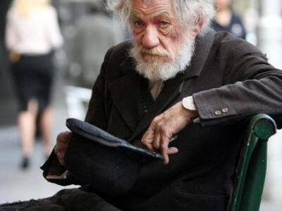 Ηταν ο σερ Ιαν ΜακΚέλεν, ο πολυβραβευμένος Βρετανός που ετοιμαζόταν να μπει στο θέατρο για να συνεχίσει τις πρόβες για το «Περιμένοντας τον Γκοντό». Οπως είπε ο ίδιος, είχε βγει να πάρει λίγο αέρα και ακούμπησε το καπέλο του στα πόδια του, όταν πέρασε η γυναίκα, τον ρώτησε αν χρειάζεται βοήθεια και του άφησε τα χρήματα. Ο ηθοποιός εξεπλάγη σε τέτοιο βαθμό από το περιστατικό, που επιχείρησε να το ξαναζήσει την επόμενη ημέρα. Αυτή τη φορά όμως παραμόνευε και ένας φωτογράφος. Μόλις κάθισε στο παγκάκι, η πρώτη γυναίκα που πέρασε του άφησε δύο δολάρια. Το περιστατικό έγινε το 2010, αλλά οι φωτογραφίες δημοσιεύθηκαν τώρα όπως αναφέρει η Huffington Post. Χρησιμοποιήθηκαν για την προώθηση της ίδιας παράστασης που θα ανέβει σε λίγες ημέρες στο Μπρόντγουεϊ με πρωταγωνιστή πάντα τον εκπληκτικό Ιαν ΜακΚέλεν.