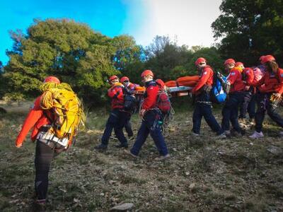 α) Διάσωση σε αναρριχητή ο οποίος έκανε πτώση και όπου είχε πάθει διάσειση όπως επίσης είχε κάταγμα στο δεξί του χέρι και είχε εγκλωβιστεί σε ύψος 40 μέτρων,