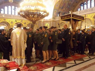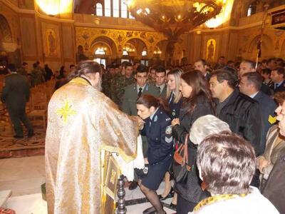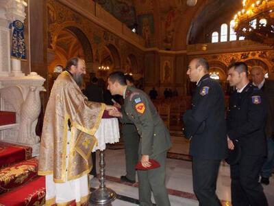 Αρχιερατική Θεία λειτουργία προς τιμή των Ενόπλων Δυνάμεων, των Σωμάτων Ασφαλείας, των στρατευσίμων και του Πυροσβεστικού Σώματος, τελέστηκε χθες Δευτέρα 25 Νοεμβρίου 2013 το πρωί στο νέο ιερό ναό του Αγίου Ανδρέου Πατρών.