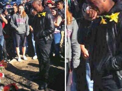 Συγκλονισμένος κρατώντας ένα λουλούδι, σαστισμένος από την εικόνα ξέσπασε σε κλάματα.