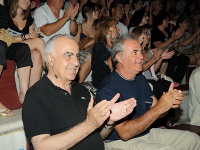 Ο Ανδρέας Φούρας με τη σύζυγό του Δώρα Τσαγκαράκη και την Ελένη Δάσιου στην πρώτη σειρά του Αρχαίου Ωδείου