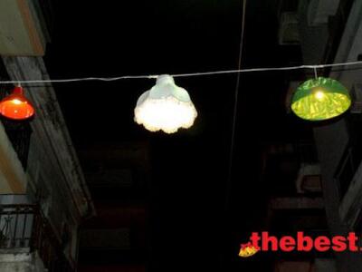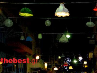 Διάφορα πολύχρωμα κρεμαστά φωτιστικά, αμπαζούρ, ριζόχαρτα καπέλα, φωτιστικά από πλεξιγκλάς, πορτατίφ, vintage φωτιστικά καπέλα, φαναράκια μεταμορφώνουν τον πεζόδρομο χαρίζοντας ένα υπέροχο φως που γέμισε την καρδιά μας!