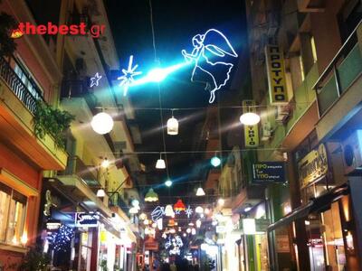 Καθώς κατεβαίναμε τον πεζόδρομο της οδού Παντανάσσης, τα βλέμματα στράφηκαν ξαφνικά στον ουρανό ανάμεσα στην Κορίνθου και Μαιζώνος και είδαμε τον μοναδικό Χριστουγεννιάτικο διάκοσμο που μας τράβηξε την προσοχή για την.. ιδιαιτερότητα του!
