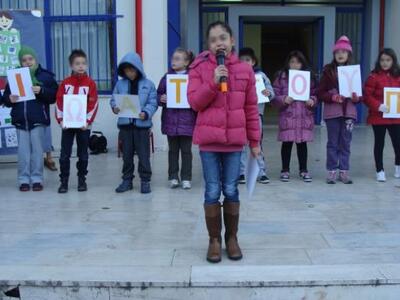 Η Δ/ντρια του Σχολείου κ. Μαρία Πολυδώρου έδωσε πολλά συγχαρητήρια στα παιδιά καθώς και στη δασκάλα τους την κ. Μαρία Παπαχριστοπούλου όχι μόνο για την ωραία τους παρουσία αλλά και για τον έπαινο που τους δόθηκε από τη UNICEF για τη συμμετοχή τους με αφίσα στο διαγωνισμό με τίτλο «Τα παιδιά γράφουν και ζωγραφίζουν τα δικαιώματά τους.».