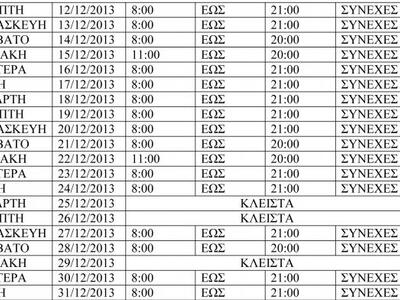 Κατά την περίοδο των Εορτών των Χριστουγέννων τα Σούπερ Μάρκετ της Πάτρας θα λειτουργήσουν ως εξής: