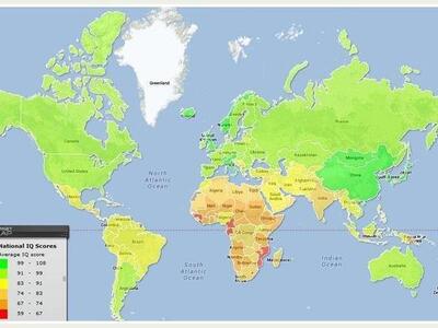 Aυτός ο χάρτης παρουσιάζει το μέσο όρο από τα ποσοστά ευφυίας του κάθε λαού ανάλογα με την γεωγραφική του θέση...