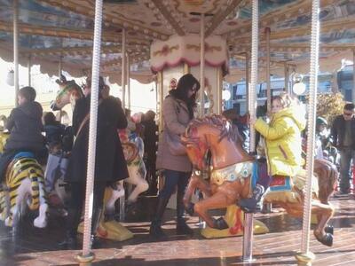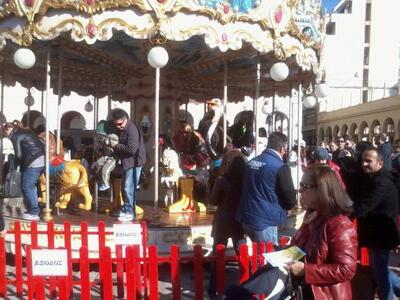 Στην πλατεία Γεωργίου όπου ο Δήμος έχει στήσει το Χριστουγεννιάτικο Χωριό εκατοντάδες μικροί και μεγάλοι χάζεψαν με τις εντυπωσιακές κατασκευές του Καρναβαλικού Εργαστηρίου, γλυκάθηκαν στα καραμελόσπιτα ενώ πάρα πολλά πιτσιρίκια έκαναν βόλτα με το τραινάκι και το καρουζέλ.