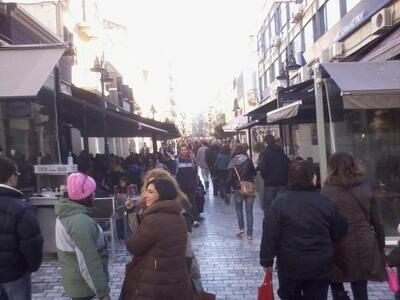 Το αδιαχώρητο και στους πεζόδρομους του κέντρο (Αγίου Νικολάου, Ρήγα Φεραίο κ.α.) όπως οι συμπολίτες έκαναν τις βόλτες τους, τα δώρα τους και απόλαυσαν τα διάφορα events που βρίσκονταν σε εξέλιξη. Στις δε καφετέριες δεν έπεφτε καρφίτσα.