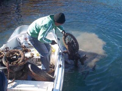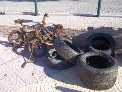 Το συνεργείο καταδύσεων έβγαλε στην στεριά πλήθος αντικειμένων όπως ελαστικά αυτοκινήτων, σίδερα, ποδήλατα καθώς και έναν πράσινο κάδο απορριμμάτων.