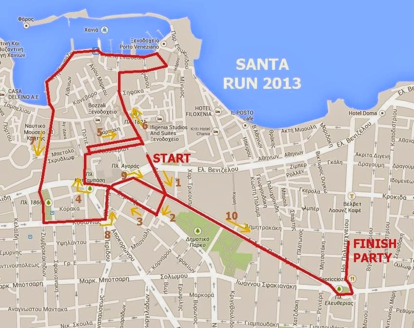 Το Santa Run είναι μία γιορτινή, φιλανθρωπική διοργάνωση, παρωδία του γνωστού Santa Run που διοργανώνεται σε διάφορες πόλεις του κόσμου κάθε Δεκέμβρη. Πρόκειται για ένα δρόμο περπατήματος μέσα στην πόλη των Χανίων με στολές Αη Βασίλη. Σταθμοί ανεφοδιασμού είναι τα καταστήματα της πόλης που αντί για νερό έχουν μπύρα. Επίσημη χρονομέτρηση και κατατακτήριες θέσεις δεν υπάρχουν. Στο Santa Run είναι όλοι κερδισμένοι γιατί προσφέρουν σε παιδιά που έχουν ανάγκη.