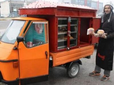 Ο άνδρας της φωτογραφίας, ο Νίκος, μετέτρεψε με πολύ μεράκι ένα τρίκυκλο σε κινητό τυροπιτάδικο και γυρίζει στους επαγγελματικούς χώρους επί της παλιάς εθνικής οδού Λάρισας – Αθηνών προσφέροντας ζεστές τυρόπιτες, κρύα σάντουιτς και χυμούς στους εργαζόμενους.