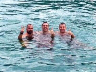 Μαζί με φίλους του πήγε σήμερα στη Βουλιαγμένη για την πρώτη βουτιά της φετινής χρονιάς. Παρά το λίγο κρύο που έχει, εκείνοι βούτηξαν στα νερά της περιοχής και απαθανάτισαν αυτές τις στιγμές για τους φίλους τους στο twitter.