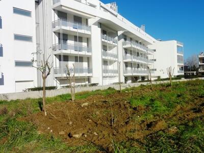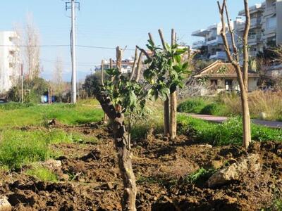Στα πλαίσια των εργασιών εκσκαφής, αρκετά από τα ήδη υπάρχοντα δέντρα έπρεπε να κοπούν. Με πρωτοβουλία του Συλλόγου Γονέων και Κηδεμόνων του 16ου Δημοτικού Σχολείου και ύστερα από ενέργειες της Προέδρου κ. Κωστούλια – Σταθά Αφροδίτης, ο ανάδοχος εργολάβος, αντί να κόψει, αφαίρεσε με προσοχή περίπου 10 καλλωπιστικά και οπορωφόρα δέντρα. Στη συνέχεια ο τομέας πρασίνου του Δήμου, μετέφερε και μεταφύτευσε τα δέντρα στην υπό κατασκευή πλατεία που βρίσκεται στη διασταύρωση των οδών Αγίου Κωνσταντίνου και Κ. Καραμανλή. Η ανάληψη αυτής της πρωτοβουλίας από την κ. Κωστούλια – Σταθά Αφροδίτη έγινε στα πλαίσια ενίσχυσης της προσπάθειας του Εκπολιτιστικού Συλλόγου Αγιάς και Τερψιθέας, για την κατασκευή και διαμόρφωση του χώρου της νέας πλατείας.