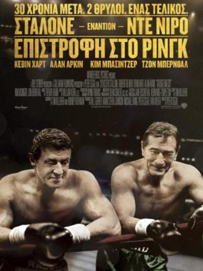 Στην κωμωδία του στούντιο της Warner Bros «Grudge Match – Επιστροφή στο Ρινγκ» που ήδη προβάλλεται στις Ηνωμένες Πολιτείες της Αμερικής και από την επόμενη Πέμπτη 16 Ιανουαρίου 2014 θα βγει και στην Ελλάδα (αναμένεται και στα Ster Cinemas, στη Βέσο Μάρε) πρωταγωνιστούν ο αλλοτινός Ρόκι και υποψήφιος τότε για Όσκαρ ερμηνείας, Σιλβέστερ Σταλόνε (Χένρι “Ρέιζορ” Σάρπ) και ο βραβευμένος με Όσκαρ ερμηνείας Ρόμπερτ Ντε Νίρο (Μπίλυ “Δε Κιντ” ΜακΝτόνεν).