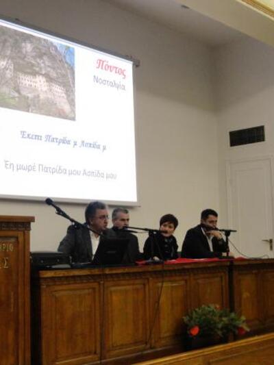 αναφέρθηκε με ιστορικά στοιχεία στον πολιτισμό των Ελλήνων του Πόντου, όπως αυτός αναδεικνύεται μέσα από την ποίηση, το τραγούδι και το χορό.