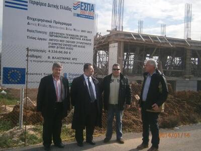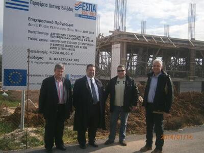 Επίσκεψη στο έργο «Ανέγερση νέου σχολικού συγκροτήματος - 1ο Δημοτικό Σχολείο Κάτω Αχαΐας Δήμου Δυτικής Αχαΐας», το οποίο χρηματοδοτείται από το Ε.Π. ΔΕ.Π.ΙΝ. 2007-2013, πραγματοποίησε την Τρίτη 14 Ιανουαρίου 2014 ο Δήμαρχος Δυτικής Αχαΐας, Ανδρέας Παναγιωτόπουλοςσυνοδευόμενος από τους Αντιδήμαρχο Έργων, Κανέλλο Κανελλόπουλο, τον Πρόεδρο της ΔΕΥΑΔ, Βασίλη Γκοτσόπουλο και τον Διευθυντή Τεχνικών Υπηρεσιών, Κων/νο Κολλυρόπουλο.