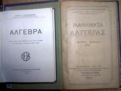 Ακόμα ο Οργανισμός Έκδοσης Σχολικών Βιβλίων με μία Άλγεβρα του Μπαρμπαστάθη το 1943, στην καρδιά του Πολέμου εντυπωσιάζει, όπως και η διάσημη γεωγραφία του Μέγα του 1940!