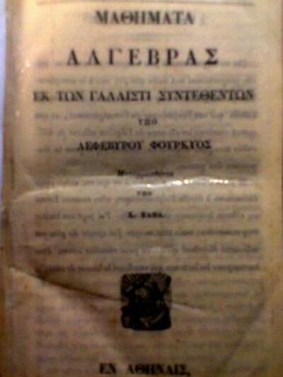 Ανάμεσα σε αυτά τα πολύτιμα βιβλία βρίσκει κανείς εκδόσεις από τα βασιλικά τυπογραφεία του Όθωνα που είχαν προορισμό τα ελληνικά σχολεία της εποχής που είχαν τυπωθεί με χορηγούς από διάφορες πόλεις της τότε Ελλάδας, βρίσκει μία αναλυτική γεωμετρία του 1857, μία Άλγεβρα του 1866, μία γεωμετρία του Χατζηδάκη του 1880, Στοιχεία Γεωμετρία του 1878, μία Πειραματική Φυσική του Δαμασκηνού του 1871, ένα βιβλίο Ολοκληρωτικός Λογισμός του Λαπαθιώτη του 1889, μία Αριθμητική του Λάκωνος του 1860 του Υπουργείου Δημοσίας Εκπαιδεύσεως όπως χαρακτηριστικά αναφέρει το βιβλίο στο εξώφυλλο του.