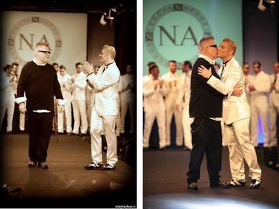 Κεντρικό πρόσωπο της επίδειξης ήταν ο απολαυστικός Τάκης Ζαχαράτος που φόρεσε ένα λευκό wedding suit κομμένο και ραμμένο πάνω του. Σε ρόλο μοντέλου ο ηθοποιός έκλεψε την παράσταση καθώς περπάτησε στη πασαρέλα και τράβηξε τα βλέμματα όλων πάνω του από τον αέρα και το άνετο περπάτημα του.