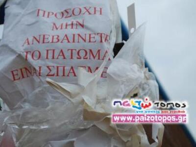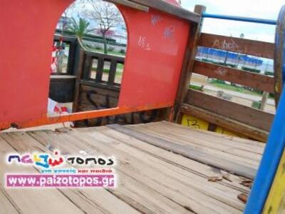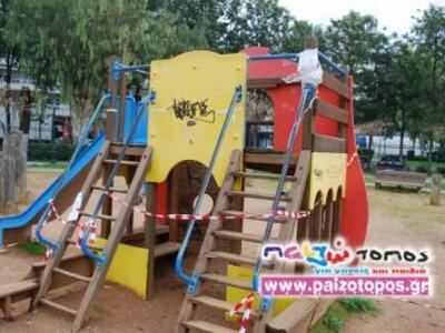 Δυστυχώς, όμως πλέον, η παιδική χαρά είναι επικίνδυνη για τα παιδιά. Δεν μπορούν να παίξουν ξένοιαστα και να χαρούν το παιχνίδι τους. Οι υπεύθυνοι ενώ έπρεπε άμεσα , είτε να προχωρήσουν στην επισκευή είτε στην απομάκρυνση των κατεστραμμένων παιχνιδιών (αν δεν υπάρχουν χρήματα ) έχουν μεταφέρει μάλιστα τις ευθύνες σε περίπτωση ατυχήματος στους γονείς μ' ένα πρωτότυπο τρόπο. Τοποθέτησαν μια προστατευτική κόκκινη κορδέλα και σήμανση με την ένδειξη «απαγορεύεται η χρήση».