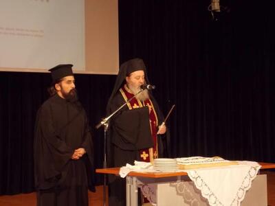 Την πίτα ευλόγησε ο Αρχιμανδρίτης π. Χρύσανθος Στελλάτος ως εκπρόσωπος του Σεβασμιωτάτου Μητροπολίτου Πατρών κ.κ. Χρυσοστόμου, ο οποίος μετέφερε τις εγκάρδιες ευχές του και μίλησε επίκαιρα