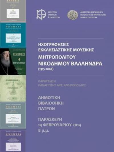 Στη σειρά αυτή των εκδοθέντων ψηφιακών δίσκων περίοπτη θέση κατέχει ο αείμνηστος Μητροπολίτης πρώην Πατρών Νικόδημος Βαλληνδράς (1915-2008), ο οποίος υπηρέτησε την Μητρόπολη Πατρών για 30 συναπτά έτη, από το 1974 έως τον Ιανουάριο του 2005.