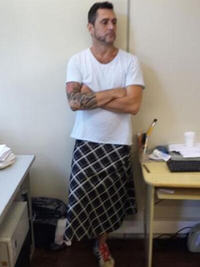 Ο Αντρέ Αμαράλ Σίλβα φόρεσε την Τρίτη μια φούστα με ασπρόμαυρα καρό που βρήκε στην ντουλάπα της γυναίκας του και μάλιστα ανάρτησε τη φωτογραφία του με τη νέα "στολή εργασίας"