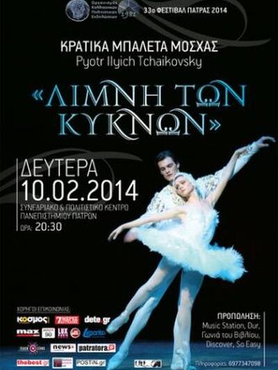 Με επιτυχία δόθηκαν στο Συνεδριακό & Πολιτιστικό Κέντρο του Πανεπιστημίου Πατρών χθες Δευτέρα 10 Φεβρουαρίου 2014, οι 2 παραστάσεις της «Λίμνης των Κύκνων» από το Κρατικό Μπαλέτο της Μόσχας, στο πλαίσιο του 33ου Φεστιβάλ Πάτρας 2014 που είναι αφιερωμένο στην μνήμη του ιδρυτή του Ανδρέα Δ. Ανδριόπουλου.