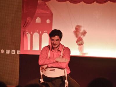 Ένα παιδί που χάνει το γέλιο του, δυο χάρτινοι ήρωες που ζωντανεύουν, δυο τρελοί αφηγητές κι ένας μπερντές. Όλοι μαζί μπερδεύονται, χορεύουν, τραγουδούν. Τι γίνεται όταν η ανθρώπινη φιγούρα συναντά τον Καραγκιόζη; Τι συμβαίνει όταν το θέατρο σκιών συνομιλεί μουσικά με το θέατρο της Δύσης; Ένα παραμύθι για το γέλιο που χάθηκε. Ή ένα παραμύθι για το γέλιο που δεν χάθηκε.