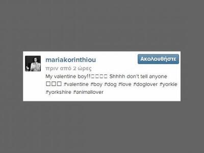 Η Μαρία Κορινθίου φωτογραφήθηκε με το «Valentine boy» της και ανέβασε μία φωτογραφία μέσα από τον προσωπικό της λογαριασμό στο instagram. Για ποιον πρόκειται; Για το σκυλάκι της…