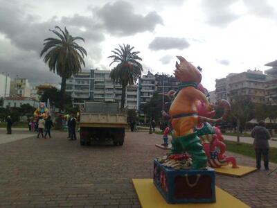 Ήδη από το πρωί της Παρασκευής τα στοιχεία της Καρναβαλούπολης παίρνουν τη θέση τους στην πλατεία, ενώ έχουν τεθεί σε ισχύ ρυθμίσεις σε ότι αφορά στη στάθμευση περιμετρικά της πλατείας.